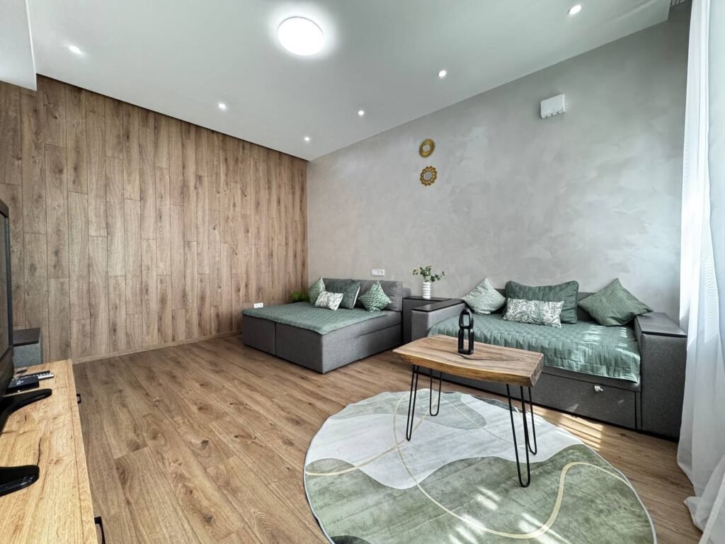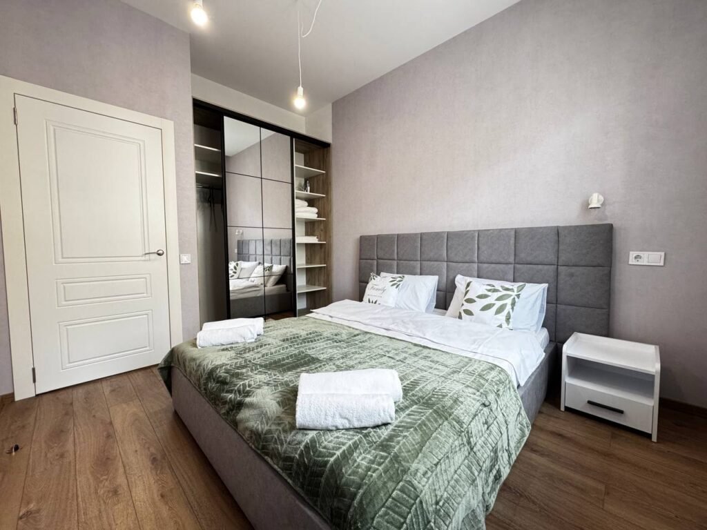 Квартира оформлена у сучасному стилі у світлих тонах. Поруч працюють багато закладів швидкого харчування. Ідеально підійдуть для розміщення родини чи невеликої групи осіб (до 6 осіб).