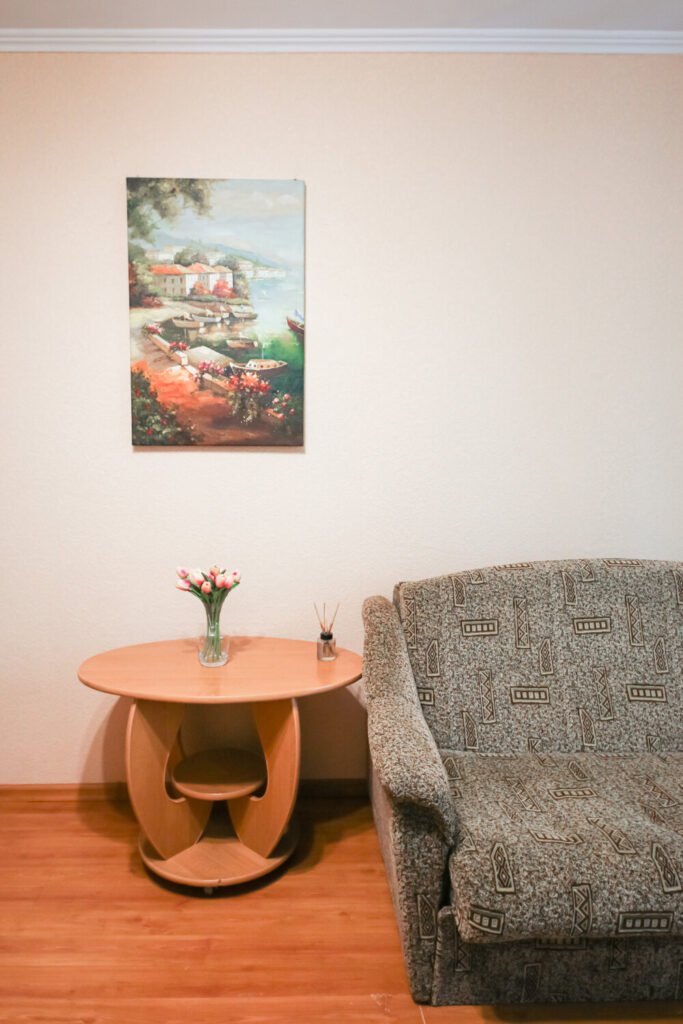 Кватрира акуратна та затишна, виконана у світлих відтінках різних кольорів.